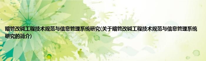 本文关于暗管改碱工程技术规范与信息管理系统研究的简介就讲解完毕,希望对大家有所帮助。