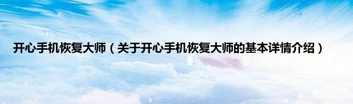 大家好我是小蝌蚪,开心手机恢复大师,关于开心手机恢复大师的基本详情介绍很多人还不知道,那么现在让我们一起来看看吧!