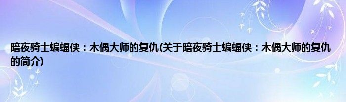本文关于暗夜骑士蝙蝠侠:木偶大师的复仇的简介就讲解完毕,希望对大家有所帮助。