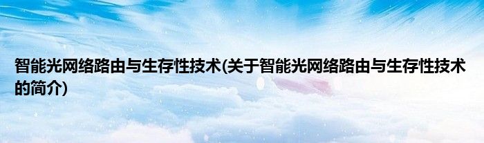 本文关于智能光网络路由与生存性技术的简介就讲解完毕,希望对大家有所帮助。