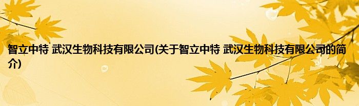 本文关于智立中特 武汉生物科技有限公司的简介就讲解完毕,希望对大家有所帮助。