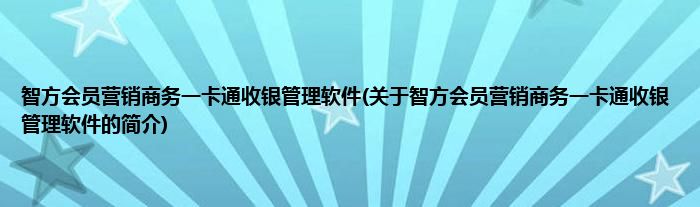 大家好,智方会员营销商务一卡通收银管理软件,关于智方会员营销商务一卡通收银管理软件的简介很多人还不知道,现在让我们一起来看看吧!