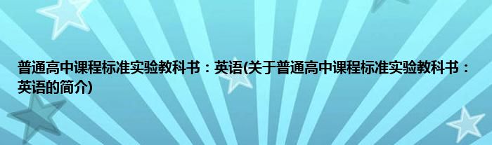 普通高中课程标准实验教科书:英语(关于普通高中课程标准实验教科书:英语的简介)