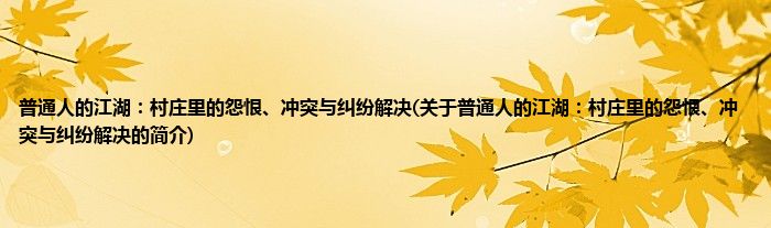 本文关于普通人的江湖:村庄里的怨恨、冲突与纠纷解决的简介就讲解完毕,希望对大家有所帮助。