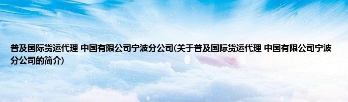 本文关于普及国际货运代理 中国有限公司宁波分公司的简介就讲解完毕,希望对大家有所帮助。