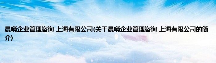 本文关于晨哨企业管理咨询 上海有限公司的简介就讲解完毕,希望对大家有所帮助。