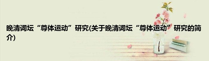 本文关于晚清词坛“尊体运动”研究的简介就讲解完毕,希望对大家有所帮助。