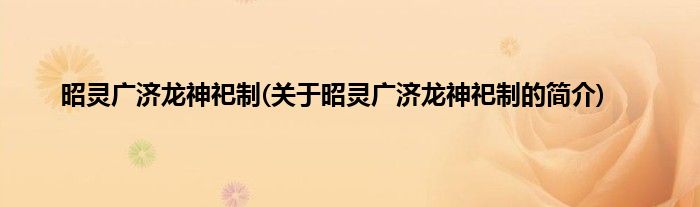 本文关于昭灵广济龙神祀制的简介就讲解完毕,希望对大家有所帮助。
