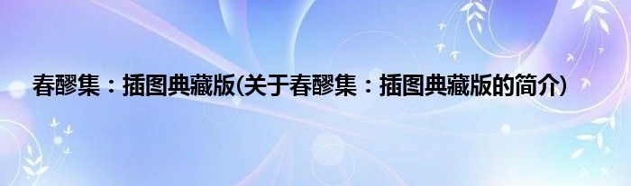 大家好,春醪集:插图典藏版,关于春醪集:插图典藏版的简介很多人还不知道,现在让我们一起来看看吧!