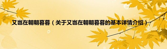 本文关于又岂在朝朝暮暮的基本详情介绍就讲解完毕,希望对大家有所帮助。