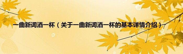 本文关于一曲新词酒一杯的基本详情介绍就讲解完毕,希望对大家有所帮助。