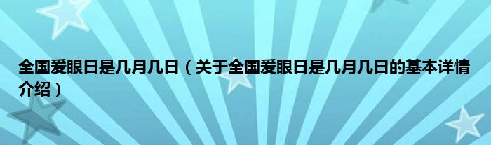 本文关于全国爱眼日是几月几日的基本详情介绍就讲解完毕,希望对大家有所帮助。
