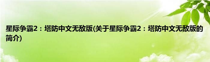 1、 《星际争霸2:塔防中文无敌版》是一款塔防小游戏。