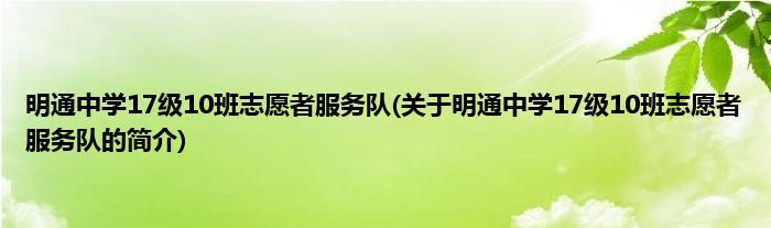 本文关于明通中学17级10班志愿者服务队的简介就讲解完毕,希望对大家有所帮助。