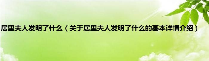 本文关于居里夫人发明了什么的基本详情介绍就讲解完毕,希望对大家有所帮助。