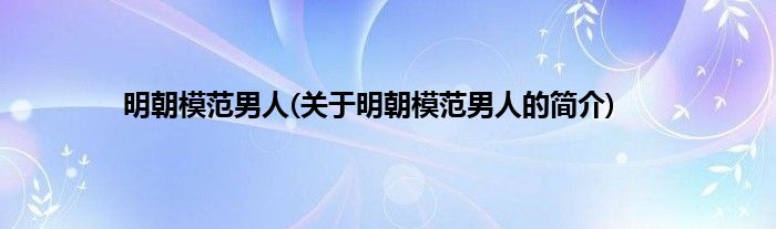大家好,明朝模范男人,关于明朝模范男人的简介很多人还不知道,现在让我们一起来看看吧!