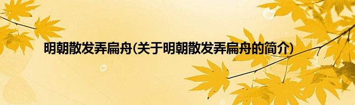 本文关于明朝散发弄扁舟的简介就讲解完毕,希望对大家有所帮助。