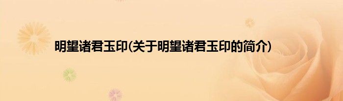 大家好,明望诸君玉印,关于明望诸君玉印的简介很多人还不知道,现在让我们一起来看看吧!