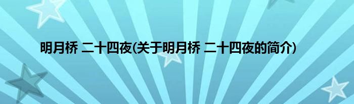 本文关于明月桥,二十四夜的简介就讲解完毕,希望对大家有所帮助。