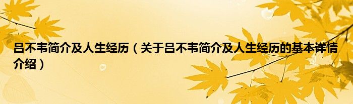 本文关于吕不韦简介及人生经历的基本详情介绍就讲解完毕,希望对大家有所帮助。