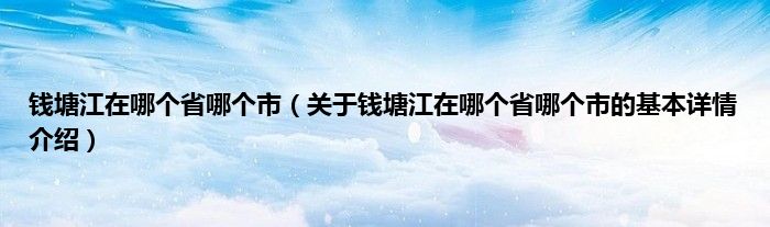 本文关于钱塘江在哪个省哪个市的基本详情介绍就讲解完毕,希望对大家有所帮助。