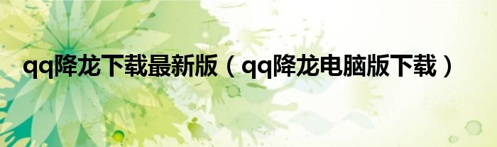 大家好,精选小编来为大家解答以上问题。qq降龙下载最新版,qq降龙电脑版下载很多人还不知道,现在让我们一起来看看吧!