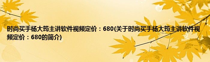 本文关于时尚买手杨大筠主讲软件视频定价:680的简介就讲解完毕,希望对大家有所帮助。