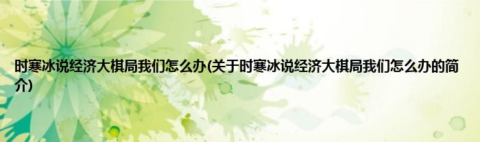 本文关于时寒冰说经济大棋局我们怎么办的简介就讲解完毕,希望对大家有所帮助。