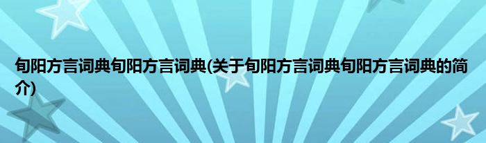 本文关于旬阳方言词典旬阳方言词典的简介就讲解完毕,希望对大家有所帮助。
