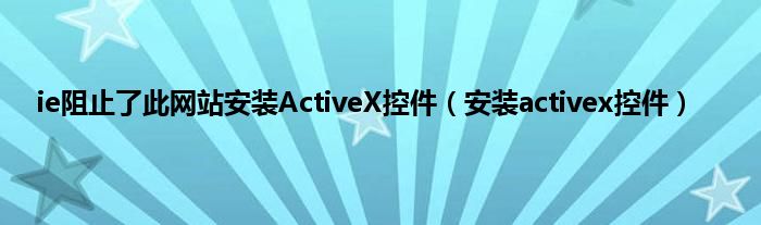大家好,精选小编来为大家解答以上问题。ie阻止了此网站安装ActiveX控件,安装activex控件很多人还不知道,现在让我们一起来看看吧!