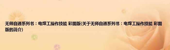 1、 《无师自通系列书:电焊工操作技能(彩图版)》是中国电力出版社出版的书籍。