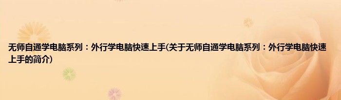 大家好,无师自通学电脑系列:外行学电脑快速上手,关于无师自通学电脑系列:外行学电脑快速上手的简介很多人还不知道,现在让我们一起来看看吧!
