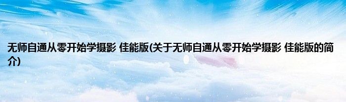 本文关于无师自通从零开始学摄影 佳能版的简介就讲解完毕,希望对大家有所帮助。