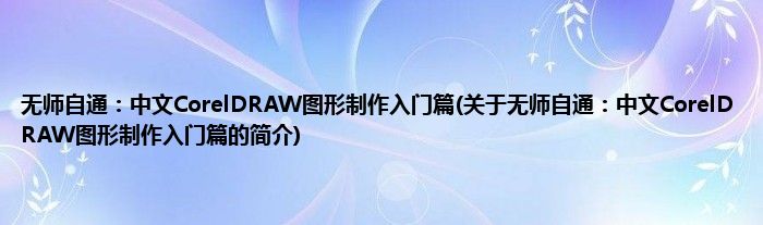 本文关于无师自通:中文CorelDRAW图形制作入门篇的简介就讲解完毕,希望对大家有所帮助。