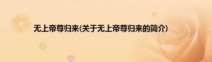 本文关于无上帝尊归来的简介就讲解完毕,希望对大家有所帮助。