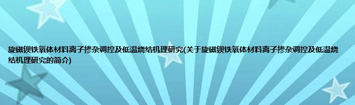 本文关于旋磁钡铁氧体材料离子掺杂调控及低温烧结机理研究的简介就讲解完毕,希望对大家有所帮助。