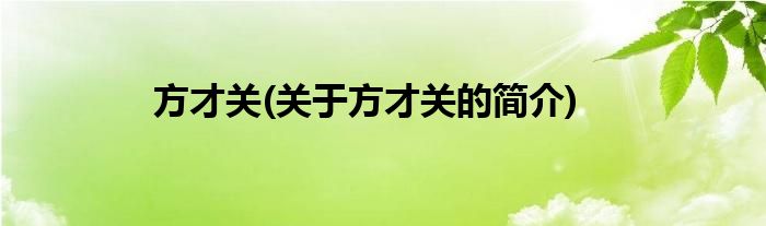 大家好,方才关,关于方才关的简介很多人还不知道,现在让我们一起来看看吧!