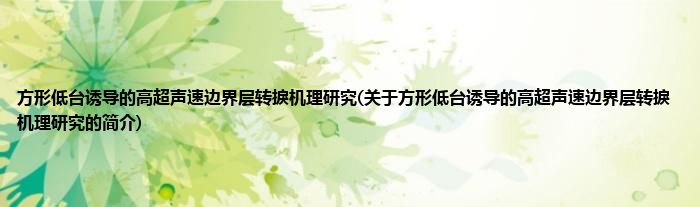 方形低台诱导的高超声速边界层转捩机理研究(关于方形低台诱导的高超声速边界层转捩机理研究的简介)