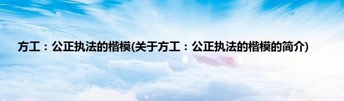本文关于方工:公正执法的楷模的简介就讲解完毕,希望对大家有所帮助。