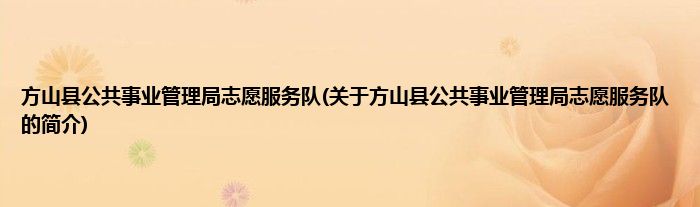 本文关于方山县公共事业管理局志愿服务队的简介就讲解完毕,希望对大家有所帮助。