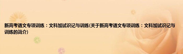 本文关于新高考语文专项训练:文科加试识记与训练的简介就讲解完毕,希望对大家有所帮助。