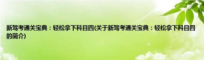 本文关于新驾考通关宝典:轻松拿下科目四的简介就讲解完毕,希望对大家有所帮助。