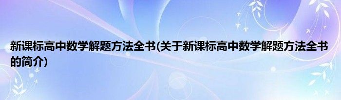 大家好,新课标高中数学解题方法全书,关于新课标高中数学解题方法全书的简介很多人还不知道,现在让我们一起来看看吧!