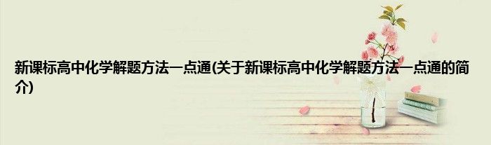 本文关于新课标高中化学解题方法一点通的简介就讲解完毕,希望对大家有所帮助。