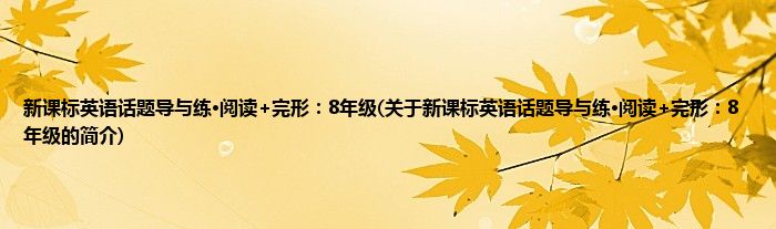 本文关于新课标英语话题导与练·阅读+完形:8年级的简介就讲解完毕,希望对大家有所帮助。