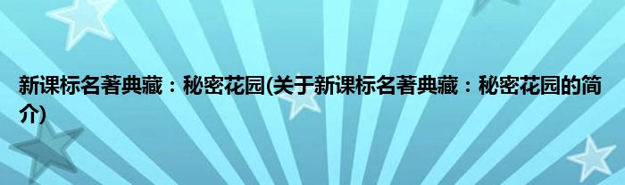 本文关于新课标名著典藏:秘密花园的简介就讲解完毕,希望对大家有所帮助。