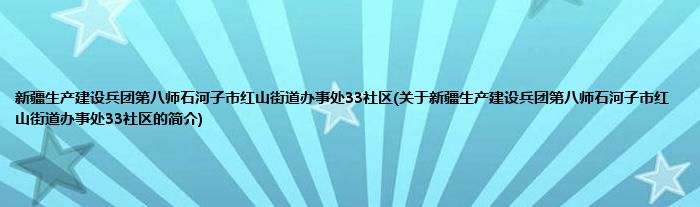 本文关于新疆生产建设兵团第八师石河子市红山街道办事处33社区的简介就讲解完毕,希望对大家有所帮助。