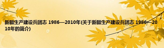 本文关于新疆生产建设兵团志 1986—2010年的简介就讲解完毕,希望对大家有所帮助。