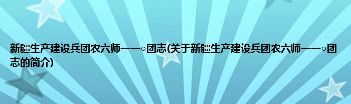 本文关于新疆生产建设兵团农六师一一○团志的简介就讲解完毕,希望对大家有所帮助。