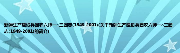 本文关于新疆生产建设兵团农六师一○三团志(1949-2001)的简介就讲解完毕,希望对大家有所帮助。